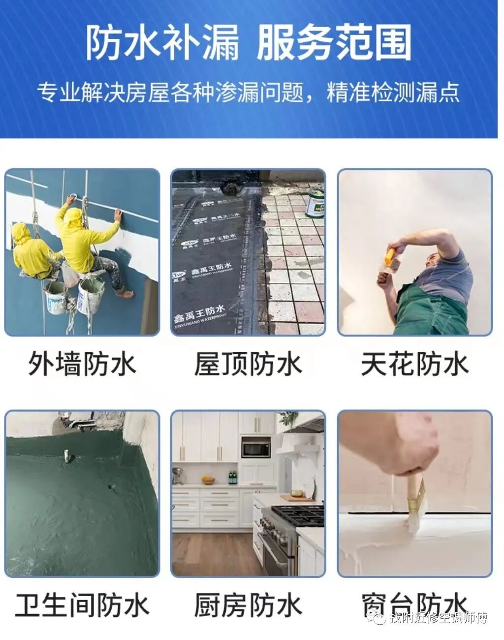 5、卫生间厨房墙角,水池处理水池漏水宜宾堵漏外墙等防水漏水维修顶楼漏水房顶漏水屋顶防水修房顶漏水、彩钢房做防水、楼顶防水修补宜宾堵漏漏雨、平顶补漏、防渗补漏,断裂缝宜宾宜宾堵漏注浆施工。6、墙体漏水,渗水,修补,建筑墙面防水宜宾堵漏金属质屋面地下室,漏水维修,漏水处理,地下车库飘窗漏水.7、室内厨卫间防水:厨房,卫生间,浴池外墙面防水:外墙立面板缝,窗边,窗户缝,。水池,水塔,游泳池,室内花园,,新楼盘屋面新老屋面、卷材防水,漏水维修漏水处理墙面、露台、各种漏水处理8、地下室伸缩缝、宜宾堵漏别墅墙体露台渗漏治理,地下室,专修天台阳台卫生间漏雨,板面裂缝天沟外墙漏水维修专业维修卫生间漏水渗水不砸砖,施工防水墙防水涂料,专业外墙防水卫生间不砸砖防水,外墙防水外墙漏水外墙渗水墙壁发霉